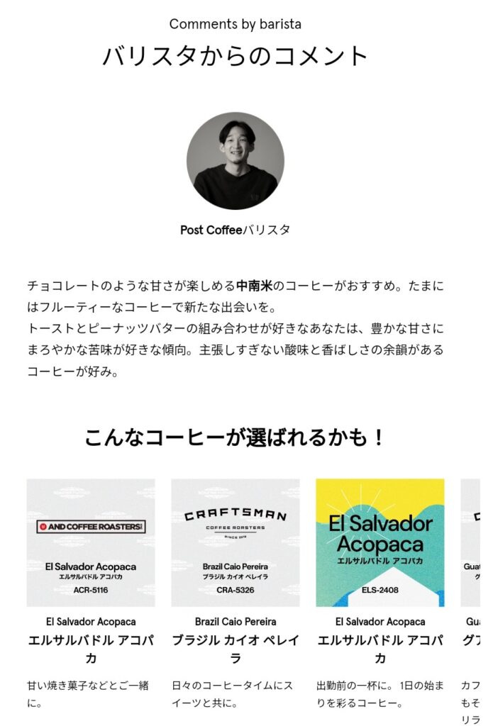 8. 【好みのコーヒーをセレクト】PostCoffee(ポストコーヒー)独自のコーヒー診断についての評判