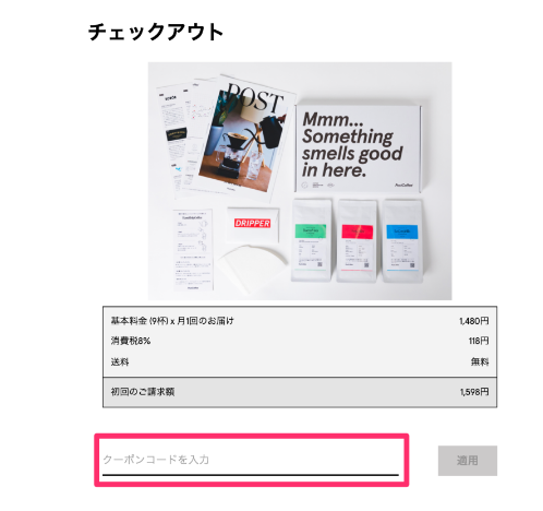そのような方は上記のクーポンコード(coffee-1l8gwx)を【ポストコーヒー公式サイト】から入力してください。
